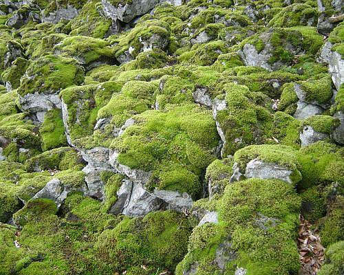 de musgos pequenos, verde-escuros ou castanho-avermelhados.