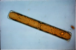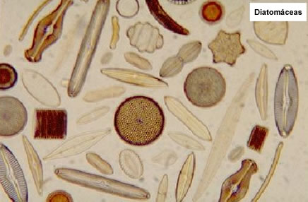 diatomáceas. Observe que as formas alongadas são