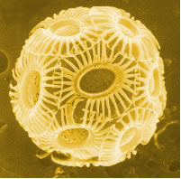 de algas douradas, com suas estruturas de sustentação
