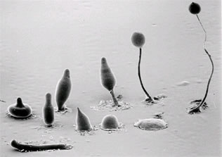 diferenciando-se em uma estipe, que forme e libera esporos.