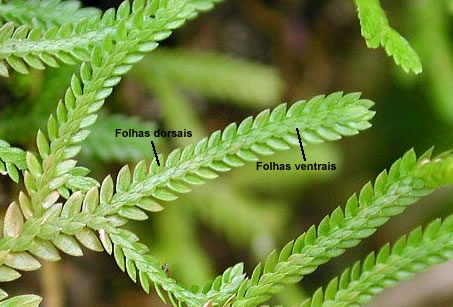 dispostos na face dorsal (duas fileiras com folhas maiores) e na