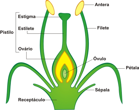 (angiospermas): antera, filete, estigma, estilete, ovário,