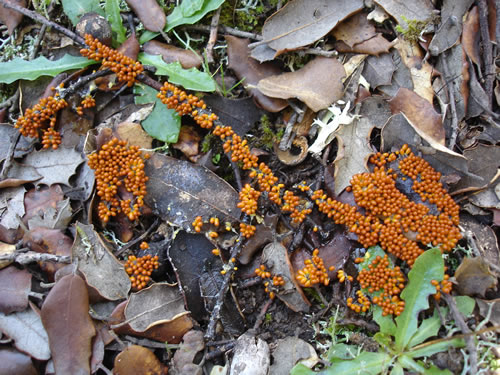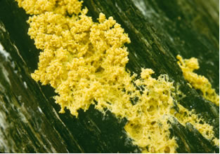 Imagem da forma jovem do mixomiceto Leucocarpus fragilis