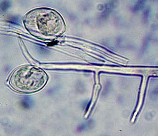 com parede espessa (oósporo). Funciona como esporo de resistência.