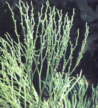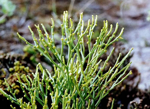 ramificada com apêndices pequenos em forma de escamas e uma