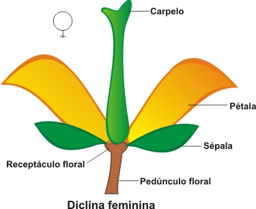 Só ovários (díclina feminina): flores carpeladas.
