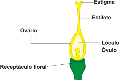 do ovário que contém um ou mais óvulos. O gineceu