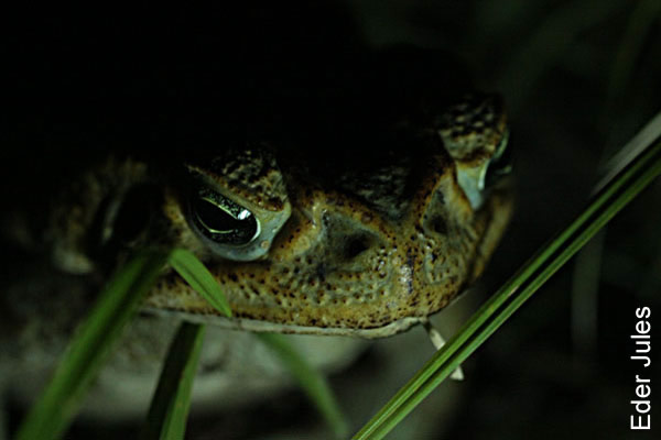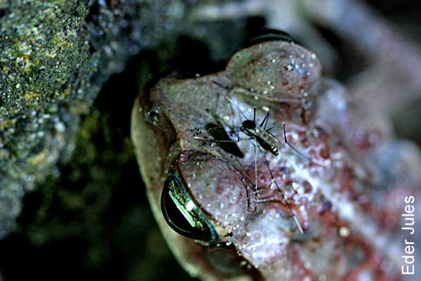 Bufo. Detalhe do mosquito sugando sangue em sua
