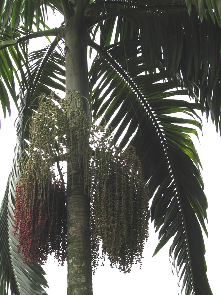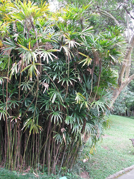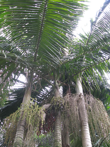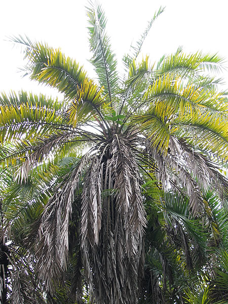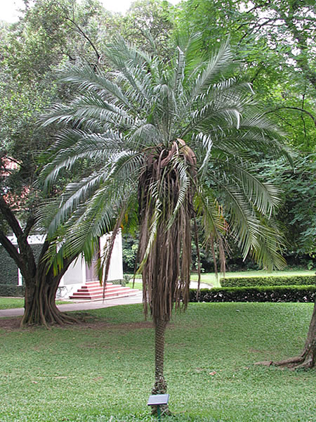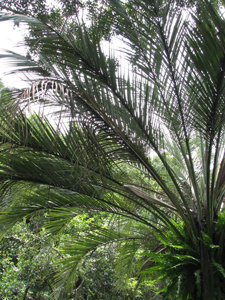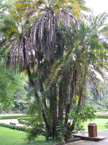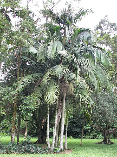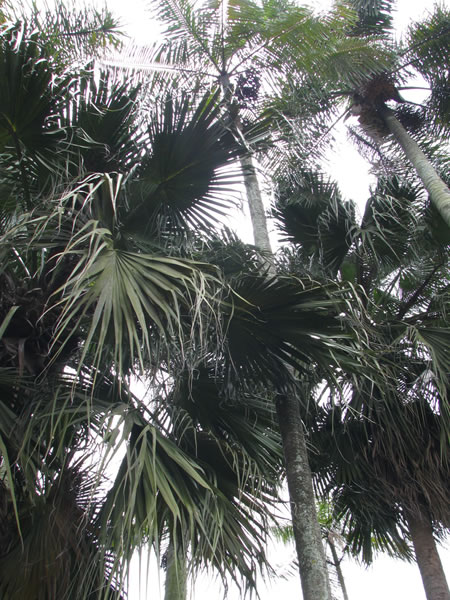 ramificado do tipo estipe, atingindo grandes alturas, mas por vezes