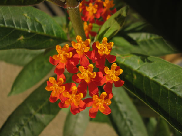 A. curassavica. Observe os estames laranja e