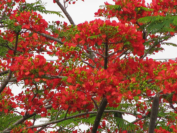 Flores de flamboyant, uma leguminosa.