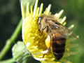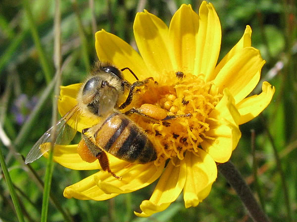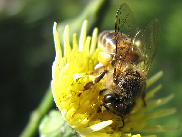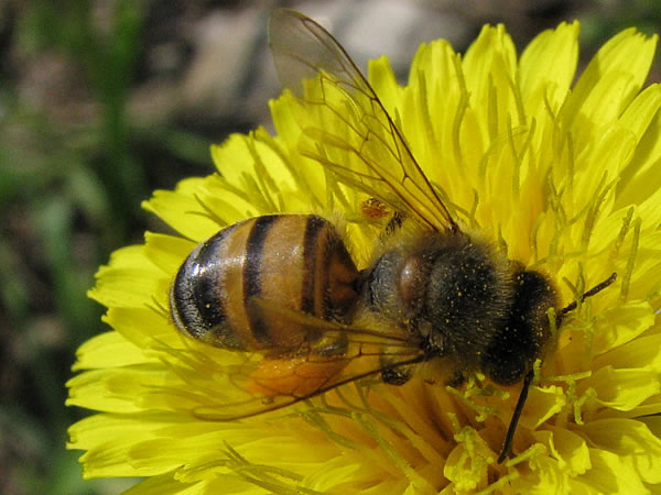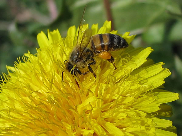 por abelha - Entomofilia. Flor dente de leão. Apis