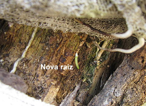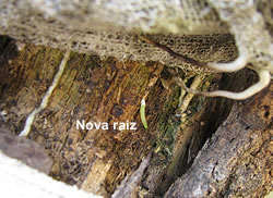 em um tronco, fixada com gaze juntamente com o subtrato. Para